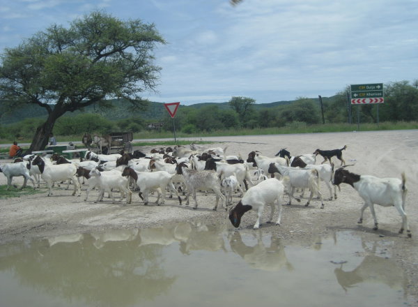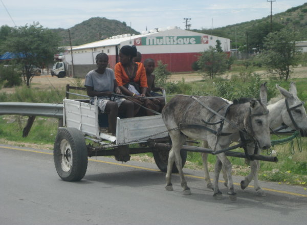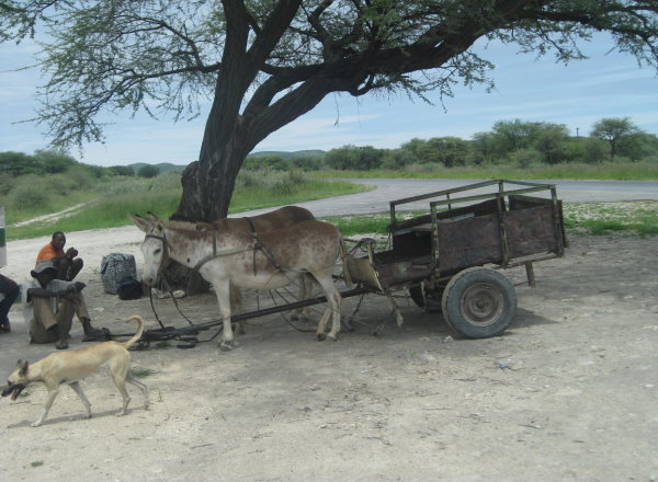 Die kleinen Städte und die Dörfer sind in dem dünnbesiedelten Land hauptsächlich Versorgungsmittelpunkte und bieten Schulen und medizinische Versorgung. Okahandja ist ein solches Dorf mit den nötigsten Einrichtungen und einem im Reiseführer hervorgehobenen Handwerkermarkt. Dieser Markt ist allerdings eher eine Ansammlung von Wellblechhütten und alten Planen sesshaft gewordener Straßenhändler mit einem bunten Angebot. Es sind schöne Stücke dabei, am besten sind aber das engagierte Feilschen und die lautstarke Konkurrenz sich nicht immer freundlich gesinnter Händler.